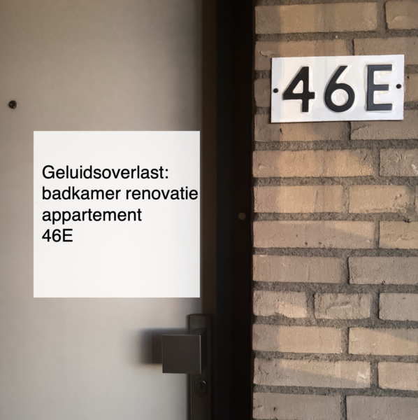 Geluidsoverlast door badkamer renovatie appartement 46E van 8 tot 22 april 2026.